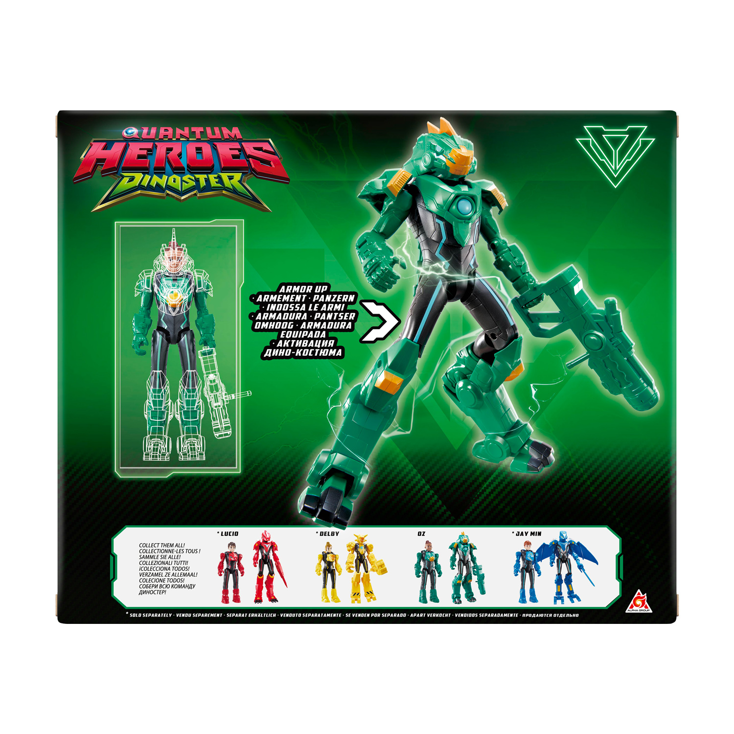 Фигурка Оз высотой 20 см имеет 2 формы игры: в Дино-костюме и без него. Дино-костюм позволяет становиться быстрее и сильнее. Надень и активируй Дино-костюм с помощью дополнительных элементов брони. Стего-костюм, активация! Время для Стего-силы!