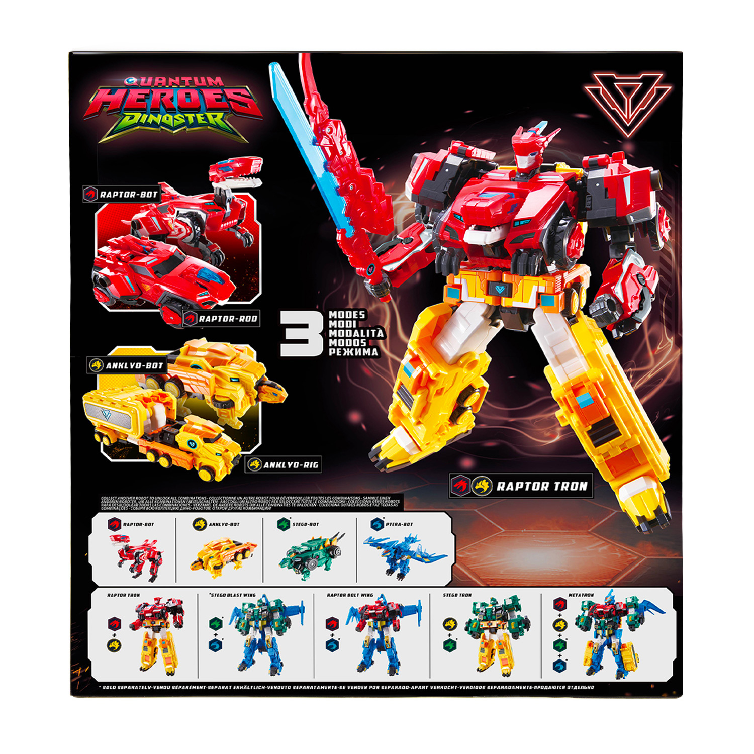 Набор Мега-трансформер 4-в-1 Раптор Трон состоит из Раптор-трака и Анкило-трака, которых можно трансформировать в двух Дино-ботов. Играй Дино-траками, пересобери их в Дино-ботов или запусти интеграцию и трансформируй обратно в Раптор Трона. Раптор Трон к бою готов!