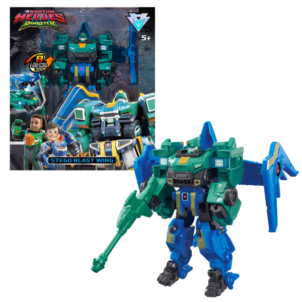 Набор Трансформер 2-в-1 Стего Бласт Винг состоит из Стего-трака и Птера-трака. Спасай вселенную Диностер и воплощай все миссии из мультика с помощью Дино-робота. Стего Бласт Винг, расправим крылья! Детрансформируй Дино-робота в два Дино-трака всего за 8 простых этапов и помоги героям спасти динозавров.
